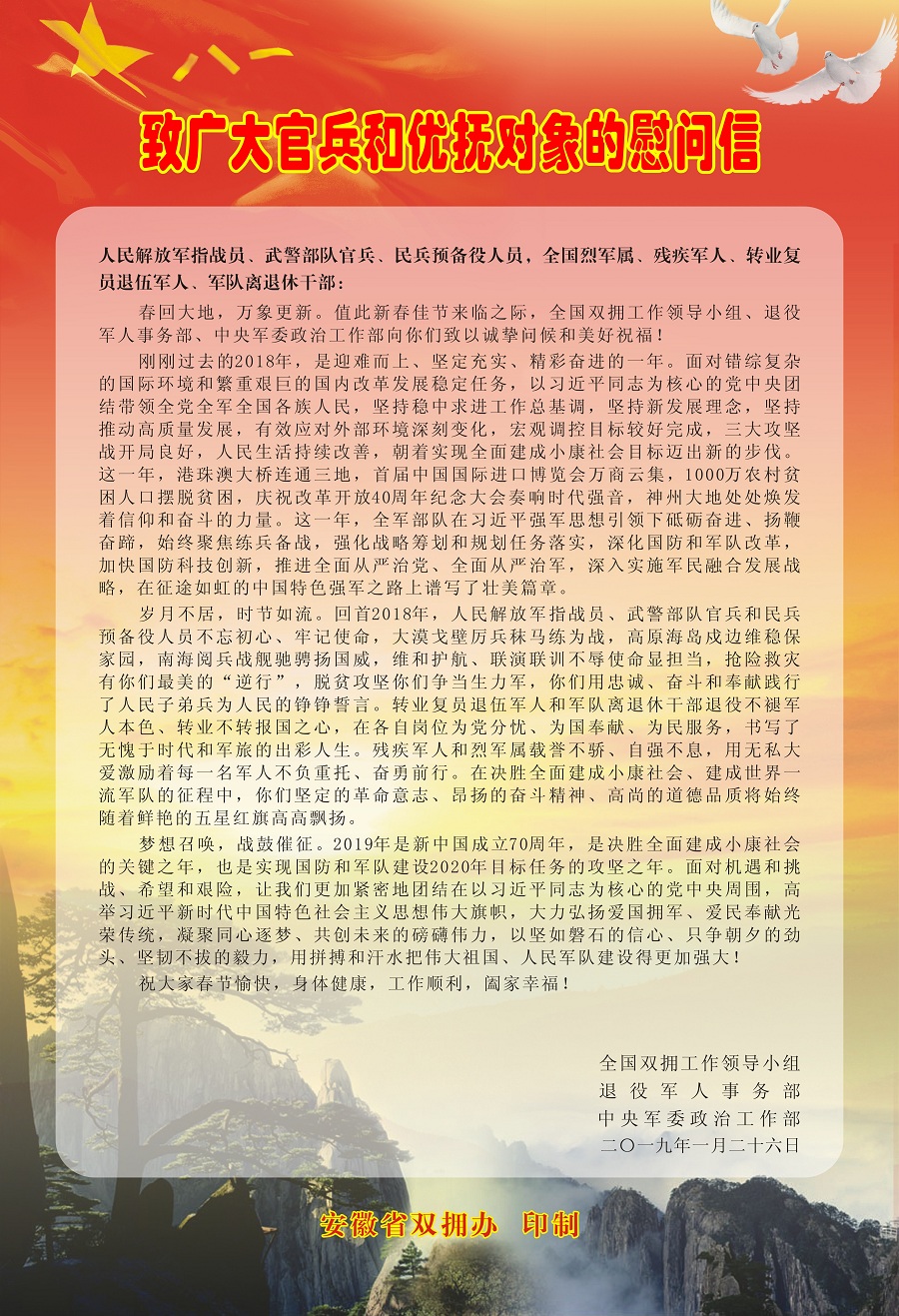 致廣大官兵和優撫對象的慰問信