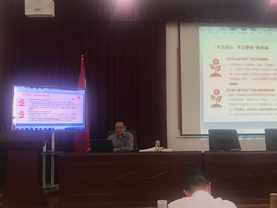 黨課上,闞乃天以為什么要開展“不忘初心、牢記使命”主題教育、習(xí)近平新時(shí)代中國特色社會(huì)主義思想的深刻內(nèi)涵及“不忘初心、牢記使命”奮力推動(dòng)揚(yáng)子二次振興三個(gè)板塊深刻闡述了中國共產(chǎn)黨人的“初心”和“使命”及“不忘初心、牢記使命”的重要意義和內(nèi)涵。