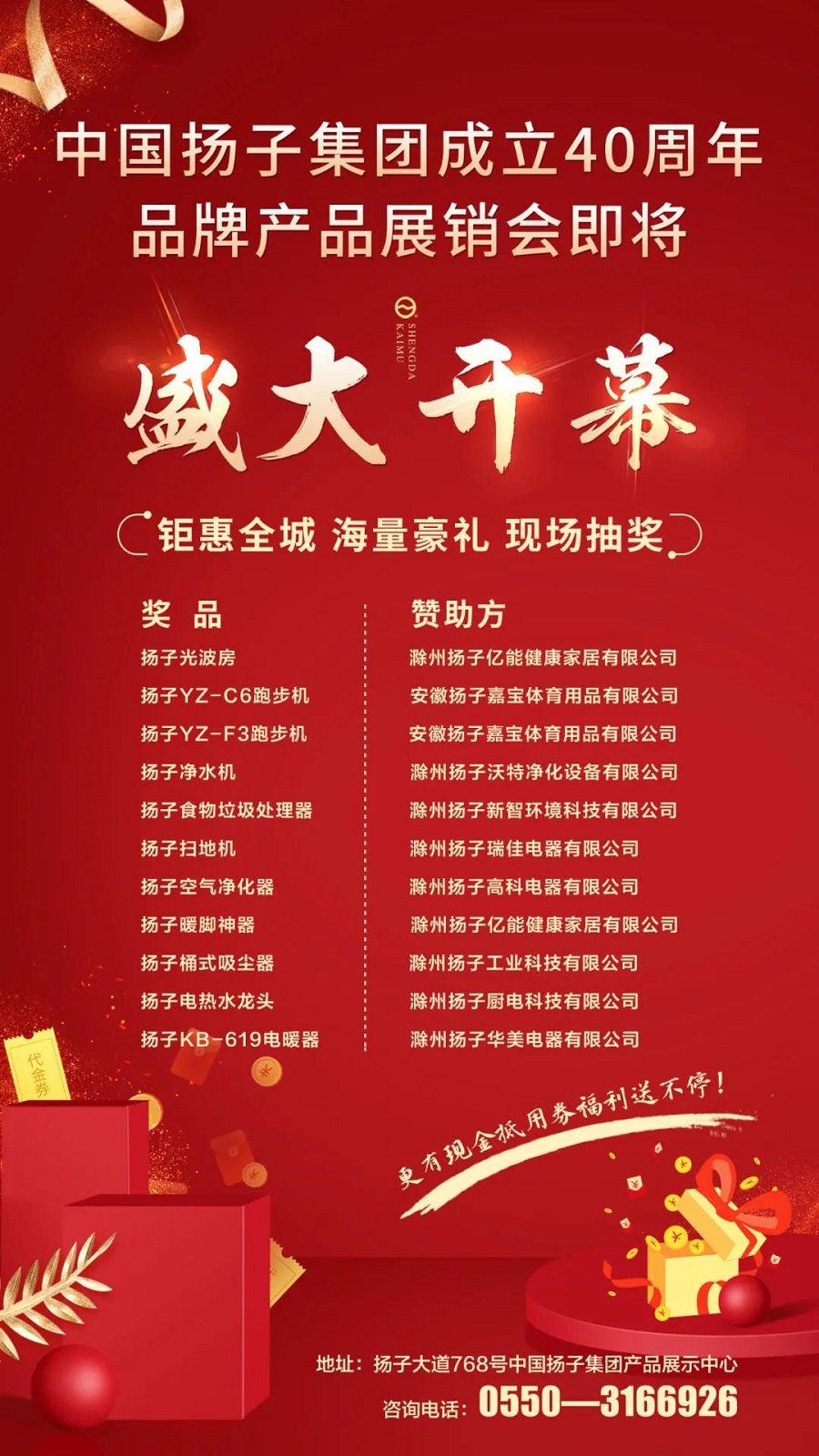 中國揚子集團成立40周年揚子產品展銷會即將盛大開幕!